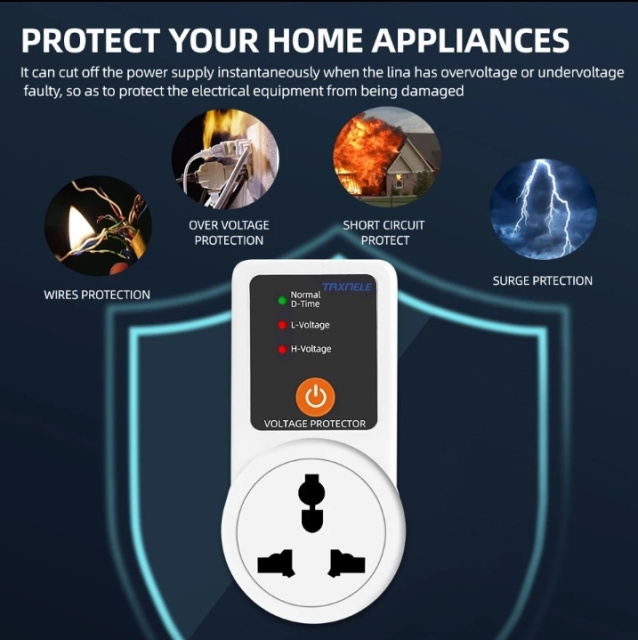 Реле напряжения Taxnele барьер для защиты бытовой техники от низкого и высокого напряжения с таймером, Полтава