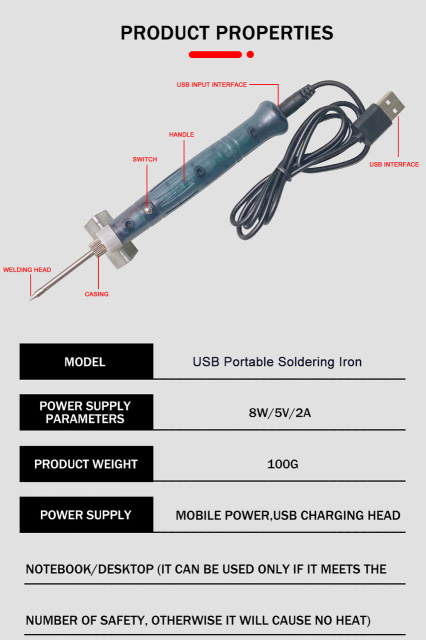 Portable USB Soldering Iron Professional Electric Heating Tools Rework Indicator Light Handle Welding Gun outdoor Repair Tool