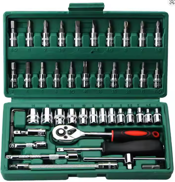 Набір з 46 комбінованих ключів з вуглецевої сталі, 1/4 дюйма, торцевий ключ, викрутка, побутовий інструмент для ремонту мотоциклів та автомобілів...