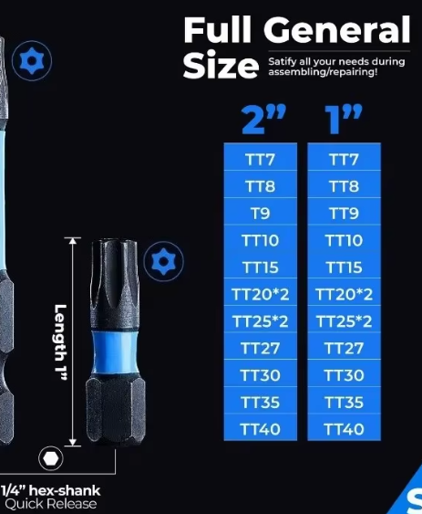 2. Посилені магнітні ударні біти torx допомагають легко закручувати гвинти. Магнетизм не втрачається після багаторазового використання.
