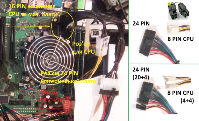 (До перехідника блок живлення АТХ підключається:
